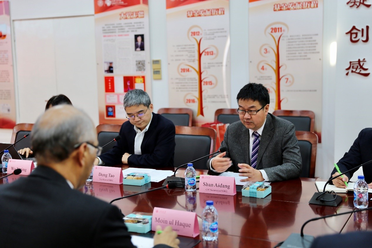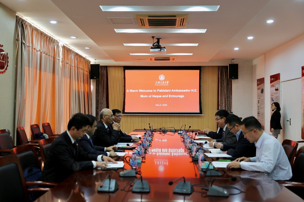 11月5日下午,巴基斯坦驻华大使Moin ul Haque(莫因·哈克)一行访问上海交大。校党委书记杨振斌在闵行校区会见了大使一行。