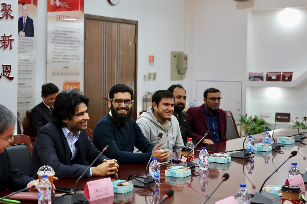 杨振斌对大使一行来访表示热烈欢迎。他简要回顾了学校悠久的历史,介绍了学校在学科建设、人才培养、国际合作交流等方面取得的成果。他表示,中巴睦邻友好关系密切,交大愿意为中巴友谊继续做出贡献,他还介绍到,目前在交大就读的巴基斯坦留学生已接近300人,其中不乏优秀学子代表交大获得了诸多国内外荣誉。