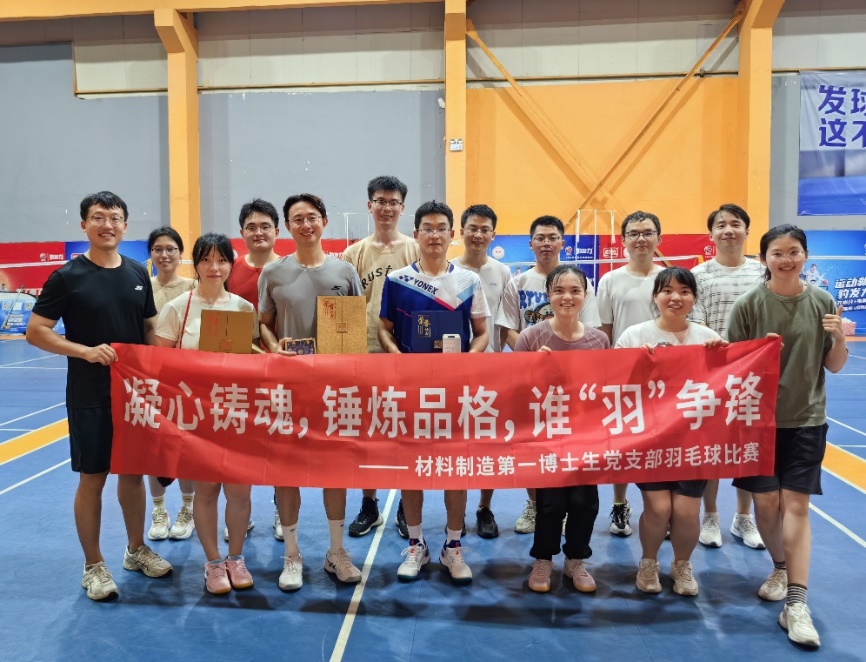 为让支部党员同志振奋精神状态,提升学习工作热情,加强支部凝聚力,深刻理解建设体育强国的丰富内涵,材料制造第一博士生党支部于2023年9月18日晚,成功举办了凝心铸魂,锤炼品格,谁羽争锋”羽毛球赛活动,为全体党员带来了一场竞技与友情并重的精彩盛事。