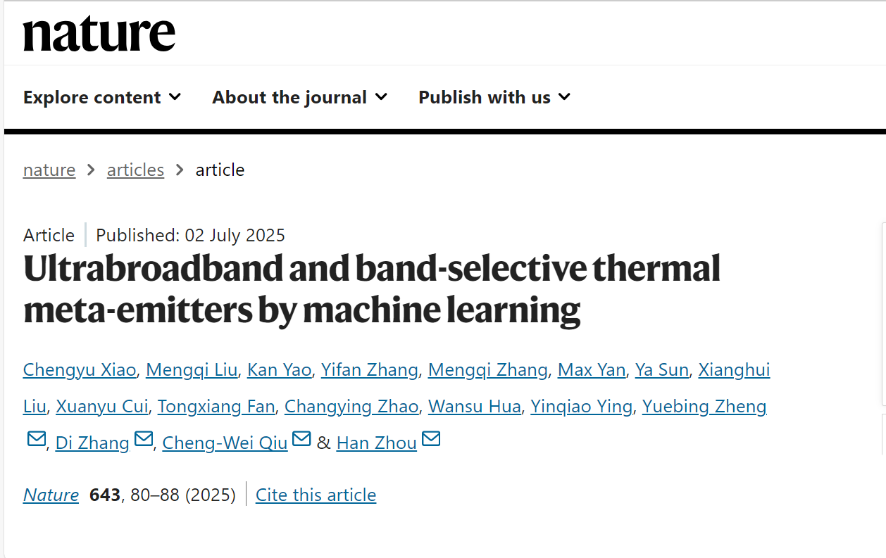 Nature审稿人对该项研究给予了高度评价:“研究展示了关于利用机器学习设计与验证宽带超材料的杰出研究。作者将先进机器学习技术应用于热辐射超材料设计,并通过实验验证展现出卓越性能,这一创新成果令人高度赞赏”。“这项研究标志着机器学习驱动的超材料设计领域取得了重大进展。该研究扎实而全面的实验结果令人信服且具有重要影响。”