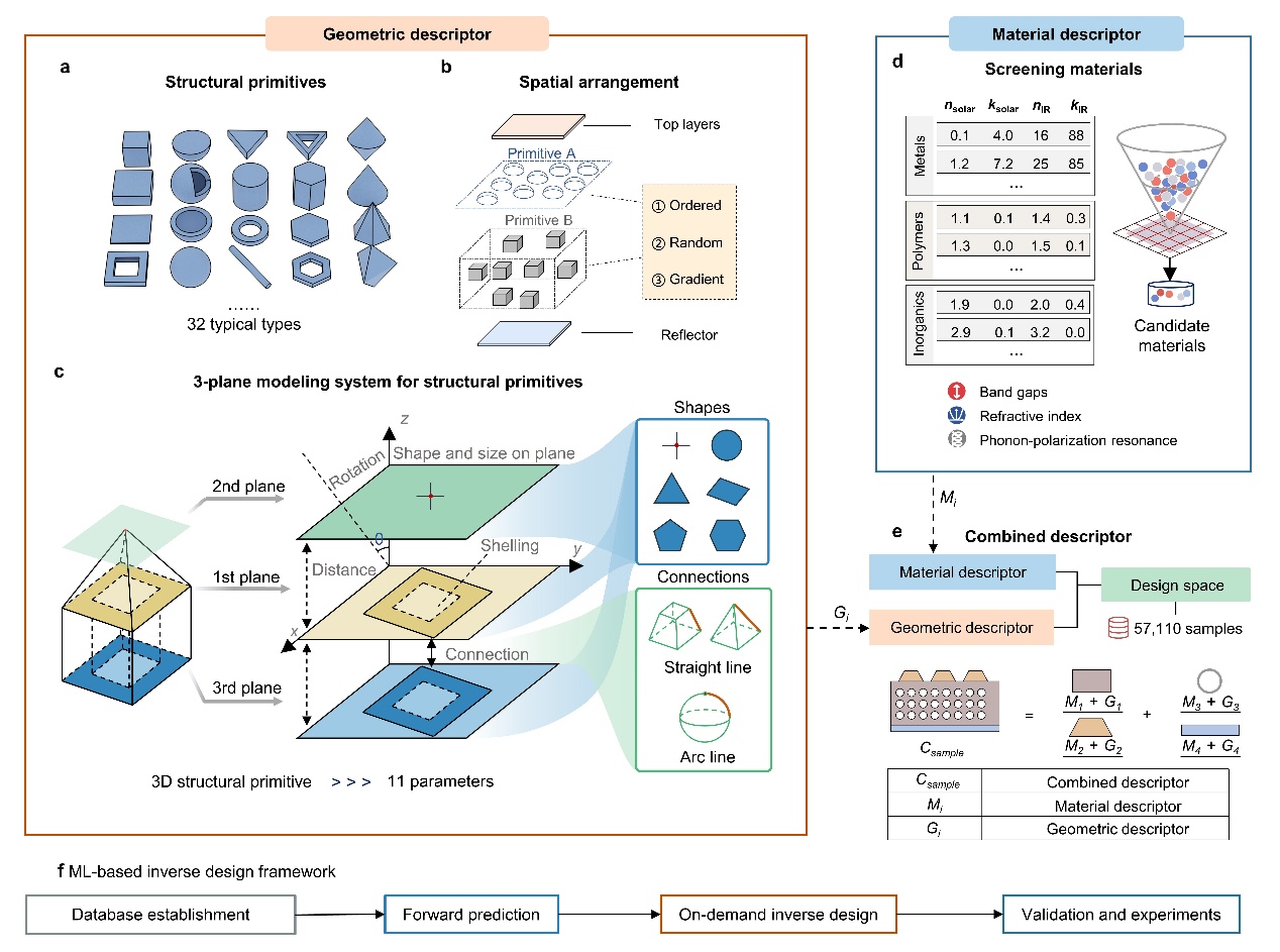 热辐射是自然界能量传递的基本形式,它就像一名不知疲倦的“热量快递员”,所有物体时刻都在通过热辐射传递热量——比如晒太阳会感觉到暖和,其实是皮肤在接收太阳的热辐射。超材料指的是一类具有特殊性质的人造材料,其中具有热辐射性能的超材料可以把多余的热量“打包”传递到外界,穿上这种材料制作的“外衣”就像穿了一件降温神器,能够帮助物体自动降温,在零能耗辐射冷却、电子器件热调控、人体热管理等领域具有重大应用价值。微结构是超材料突破自然材料限制、具备特殊功能的核心,然而,超材料的微结构设计及材料组分设计组合起来有上百万种可能性,传统的设计方法费时又费力,就像在迷宫里摸黑找路,往往依赖于长期经验和反复试错。