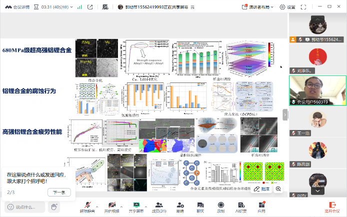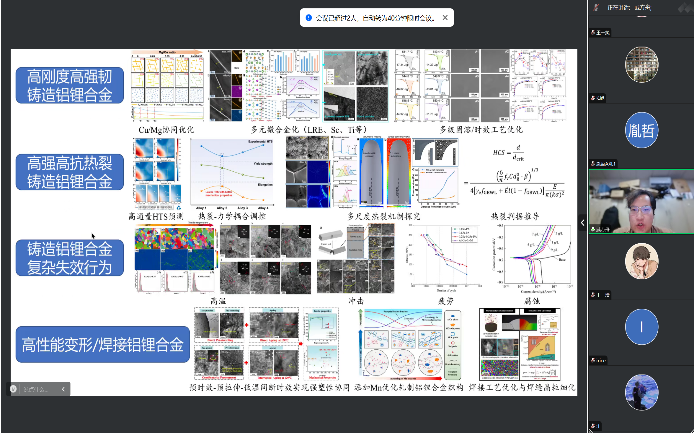 在科研交流环节,郭幼节概述了铝锂合金从基础研究到工程应用的发展历程,并深入分析了铸造与变形铝锂合金在性能、工艺及应用方面的互补性。曾广俊和交大博士生党员戚方舟分别分享了变形与铸造铝锂合金领域的最新研究进展,包括成分设计、性能优化及工程应用方面的突破,充分展示了该领域丰富的科研价值与应用潜力。活动还邀请交大特种材料研究所博士生党支部党员王一浩介绍数值模拟前沿方法。他通过建模与仿真案例,生动展示了计算材料学对实验研究的降本增效作用,拓宽了大家对模拟驱动材料设计新范式的认识。